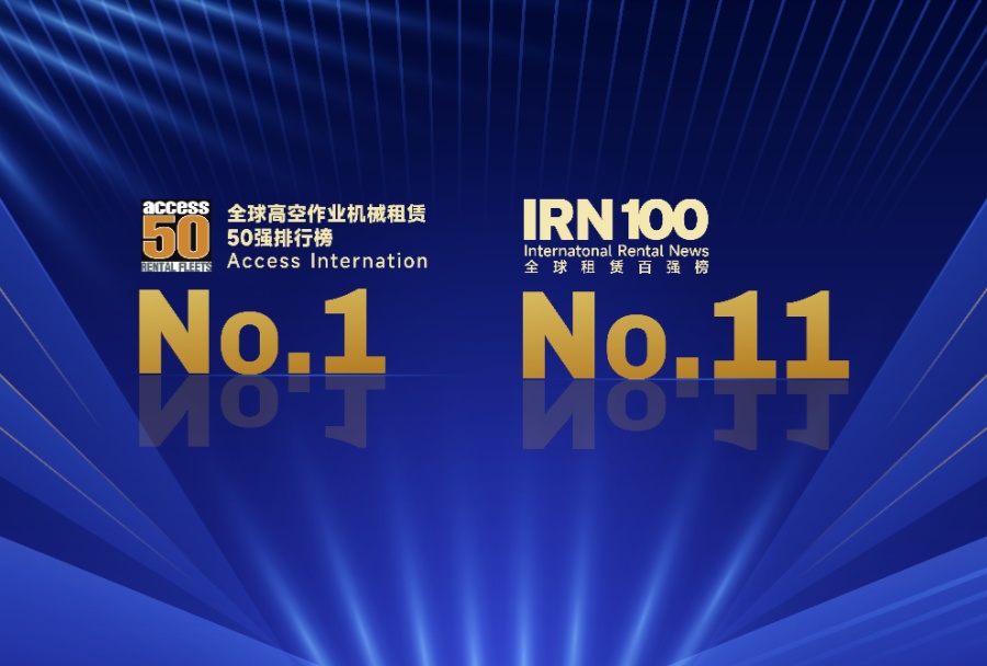 全球租赁公司排行榜( IRN100)全球排名提升至第11名;全球高空作业平台租赁企业50强(ACCESS50)位列全球第一;荣获“腾飞奖·经营性租赁领军企业”。