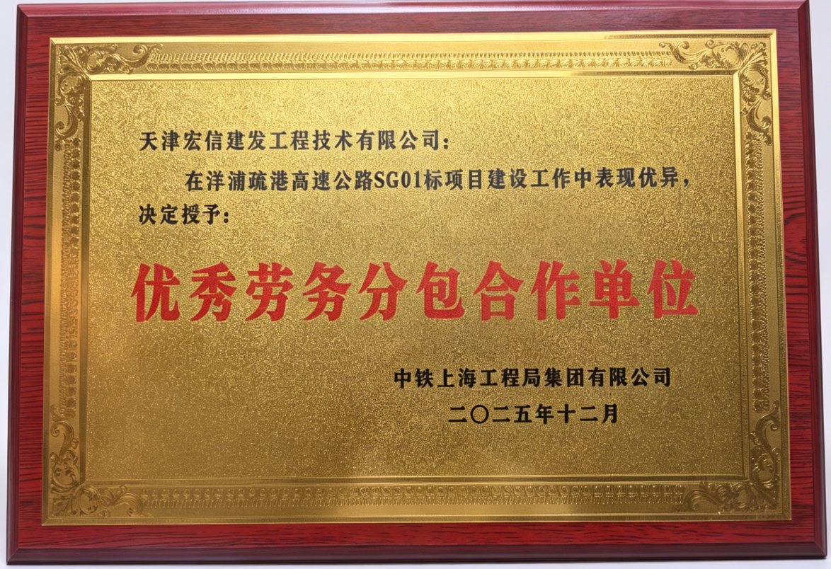 质量是工程的生命线,也是宏信建发服务客户的核心准则。在 SG01 标沥青路面工程建设中,宏信建发严格落实标准化施工要求,搭建从设备材料进场、工序管控到交工验收的全流程质量管控体系,配备专职技术与质检人员全程旁站监督,最终实现工程一次性验收合格,团队以过硬施工品质荣获“优秀劳务分包合作单位”荣誉。