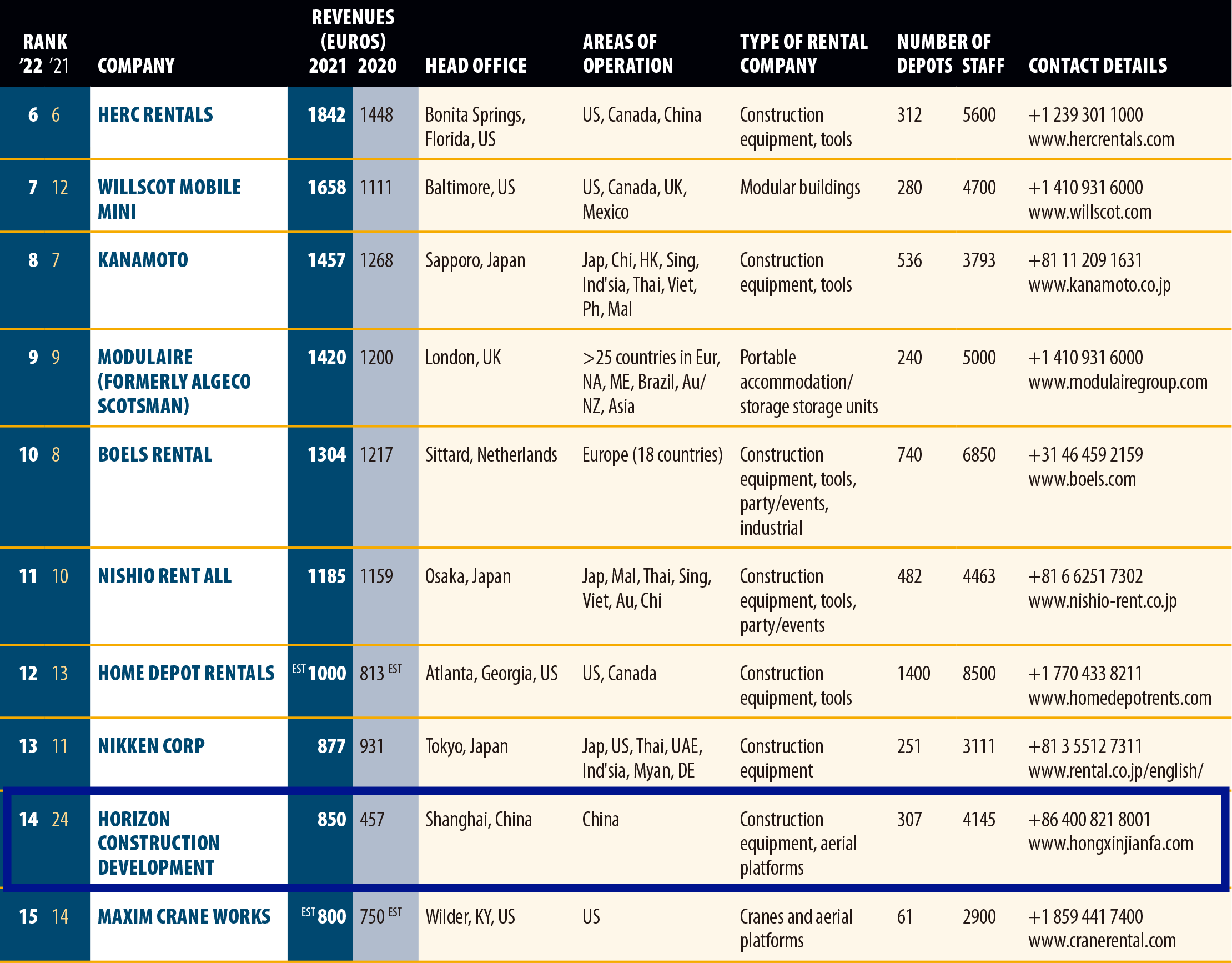 荣登全球高空作业平台租赁企业50强(ACCESS 50)排行榜第6名