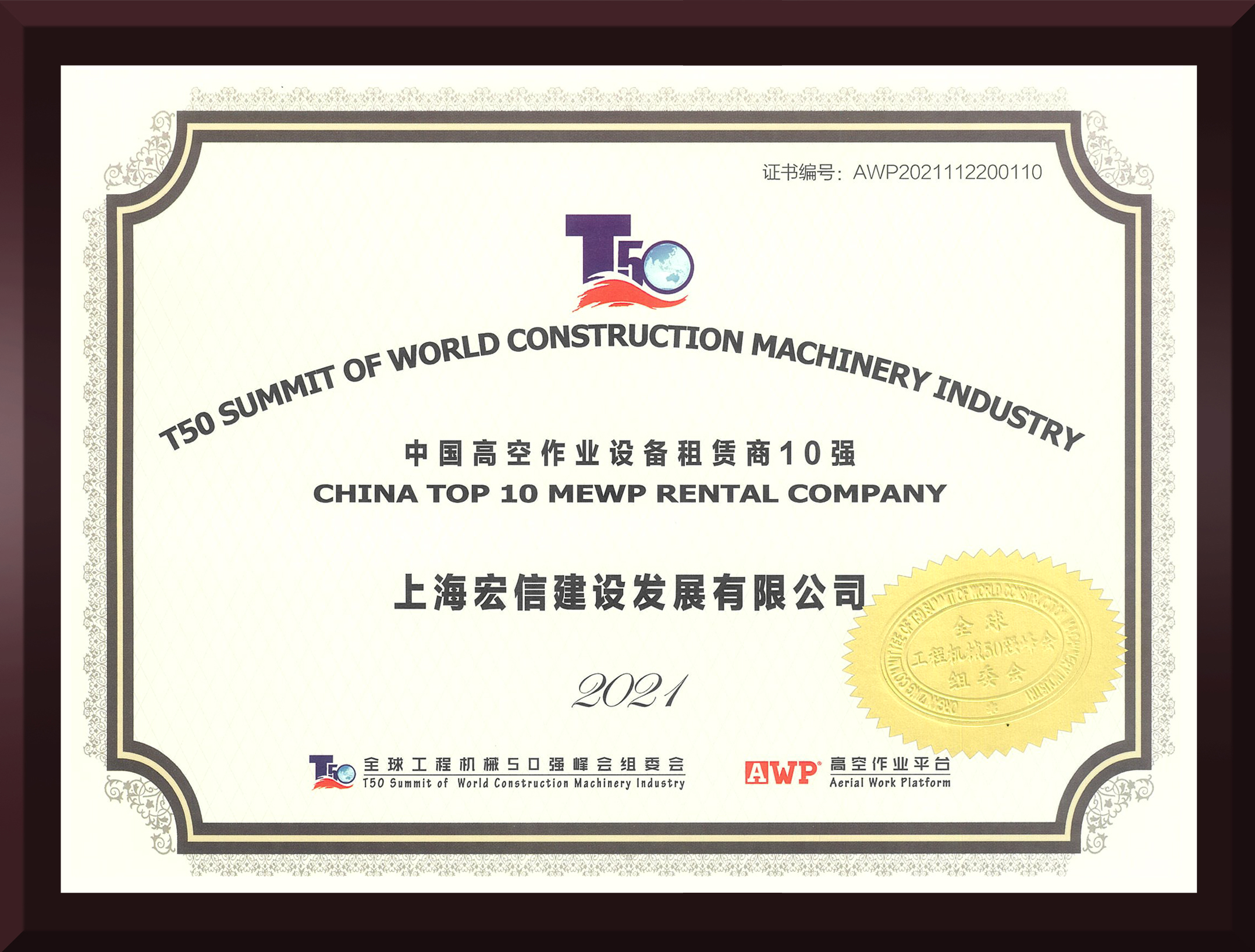 荣获全球工程机械峰会T50“中国高空作业设备租赁商10强”